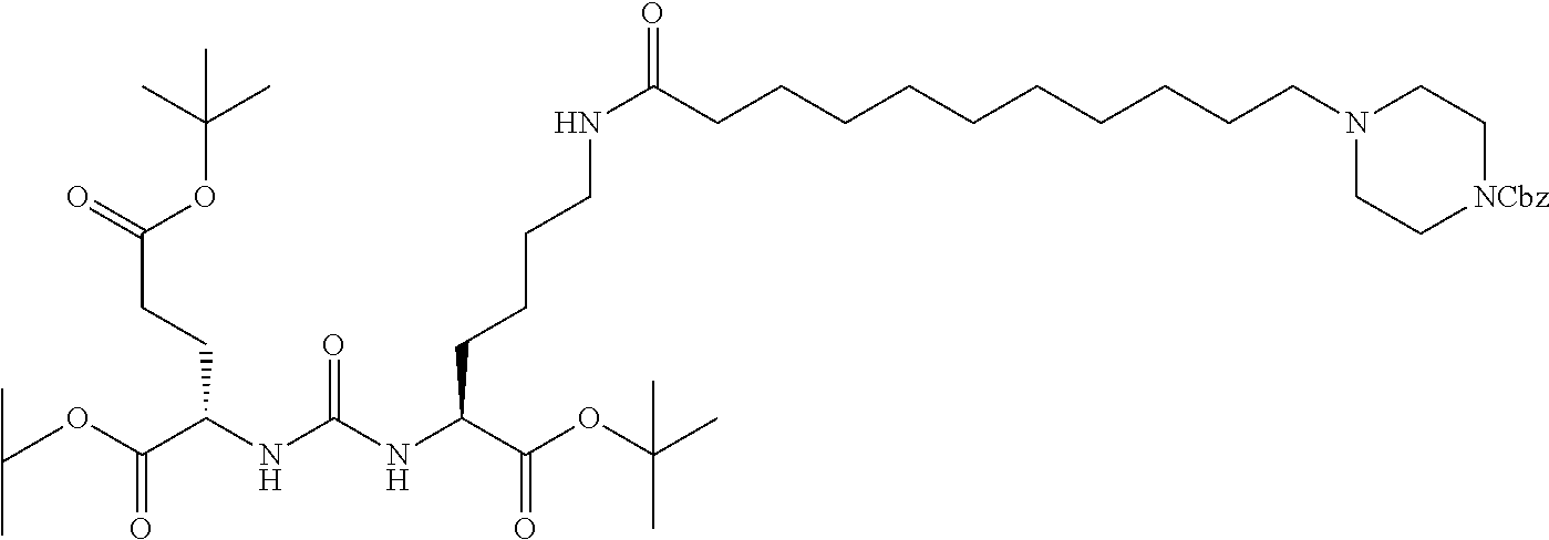 - PKQXSCVAOAUVRI-CONSDPRKSA-N CC(C)(C)OC(=O)CC[C@H](NC(=O)N[C@@H](CCCCNC(=O)CCCCCCCCCCN1CCNCC1)C(=O)OC(C)(C)C)C(=O)OC(C)(C)C Chemical compound CC(C)(C)OC(=O)CC[C@H](NC(=O)N[C@@H](CCCCNC(=O)CCCCCCCCCCN1CCNCC1)C(=O)OC(C)(C)C)C(=O)OC(C)(C)C PKQXSCVAOAUVRI-CONSDPRKSA-N 0.000 description 1