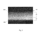 FIG. 5 is a photomicrograph of the cross-section of a web of dry lap after it has been processed according to another embodiment of the present method to form a one-side “de-densified” absorbent member.