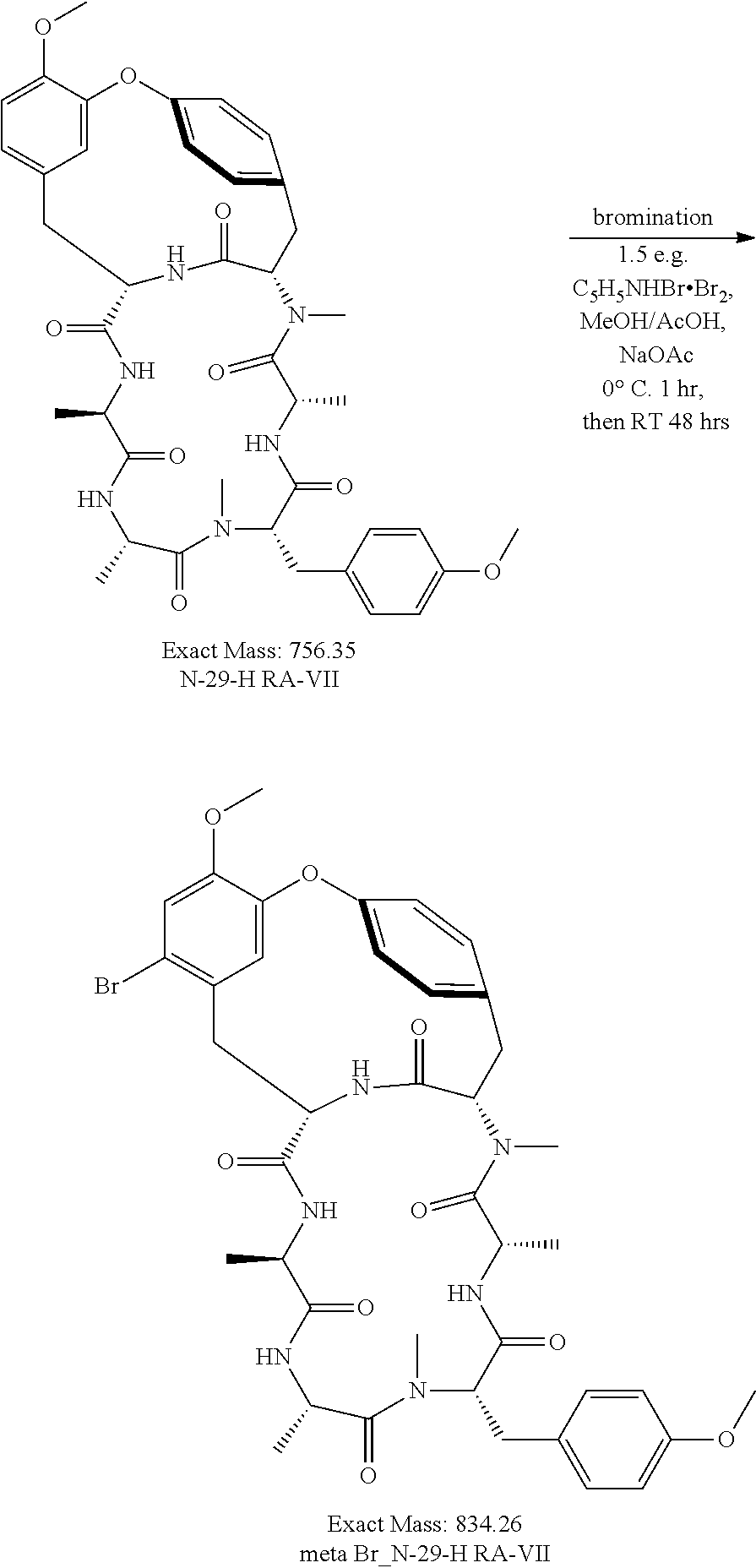 | Hitotsuyanagi et al. "Per-N-methylated analogues of an antitumor bicyclic hexapeptide RA-VII" Bioorganic & Medicinal Chemistry 19 (2011) 2458-2463. * |