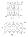 - FIG. 2 shows the stent form of FIG. 1 stretched width-wise.