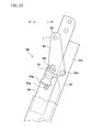 The drive link 84 and the regulation link 86 are arranged outside the first main link 82-1. A support hole 84 c is made in the upper end of the drive link 84, and a support hole 86 c is made in the upper end of the regulation link 86. Step pins (not shown) extend outwards from the left and right walls 44 a of the movable pole, passing through the support holes 84 c and 86 c and a washer 88, and then through the support hole 82 c of the first main link 82-1, and is pivotally supported by the side walls 44 a of the movable pole. A step bolt (not shown) extends from outside, passing through another washer 88 and the support hole 82 c of the second main link 82-2, and is secured to the side walls 44 a of the movable pole 44. The main link 82 is thereby arranged between the left and right side walls of the movable pole 44.