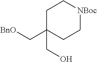 - BVRQSFGGPOZVQL-UHFFFAOYSA-N COC(=O)C1(COCC2=CC=CC=C2)CCN(C(=O)OC(C)(C)C)CC1 Chemical compound COC(=O)C1(COCC2=CC=CC=C2)CCN(C(=O)OC(C)(C)C)CC1 BVRQSFGGPOZVQL-UHFFFAOYSA-N 0.000 description 1