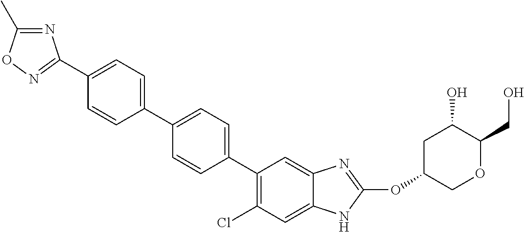 - NPFYCNYIBHSSBI-COFKYPDJSA-N CC(CO)(CO)C1=CC=C(C2=CC=C(C3=C(Cl)C=C4NC(O[C@H]5CO[C@H](CO)[C@@H](O)C5)=NC4=C3)C=C2)C=C1 Chemical compound CC(CO)(CO)C1=CC=C(C2=CC=C(C3=C(Cl)C=C4NC(O[C@H]5CO[C@H](CO)[C@@H](O)C5)=NC4=C3)C=C2)C=C1 NPFYCNYIBHSSBI-COFKYPDJSA-N 0.000 description 1