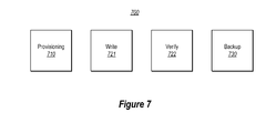 FIG. 7 abstractly illustrates an architecture 700 that includes various processing components that may operate within the storage system to provision, operate, and backup the storage system. In particular, a provisioning component 710 may be structured and configured to perform the operations described above for the provisioning phase 210, a write component 721 may be structured and configured to perform the write operations 221, a verify component 722 may be structured and configured to perform the verify operations 222, and a backup component 730 may be structured and configured to perform the operations described above for the backup phase 230.