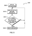 Metalayer 430 determines whether there is a change in virtual machine resources (decision block S515). In other words, are the resources of virtual machine 422 different, currently, than what they were during the setup of application(s) 440, 442, 444 or than what they were during a previous check. If there are no changes to the resources of virtual machine 422 (decision block S515, no branch), metalayer 430 continues to monitor virtual machine resources (step S510). In an embodiment, metalayer 430 determines whether there is a change periodically (e.g., every minute, hourly, etc.). In an alternative embodiment, metalayer 430 determined whether there is a change when metalayer 430 receives a resource modification from virtual machine 422, discussed previously.