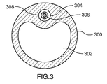 In an alternate embodiment shown in cross section view in FIG. 3, an elongate member 300 comprises main lumen 302 and a separate lumen 304. The separate lumen 304 contains a conducting wire 306 covered with electrical insulation 308 and main lumen 302 can be used for aspiration of blood and injection of contrast (e.g. for staining) and other media. This embodiment of elongate member 300 allows a dedicated lumen for each function of apparatus 102. In yet further embodiments, apparatus 102 may not comprise a lumen and the present invention is not limited in this regard.