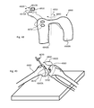 FIG. 48 illustrates a femoral rotation guide 4800 where two condial surfaces 4840A and 4840B can pivot 4860 about an axis 4850 when pinchers 4810A and 4810B are squeezed or extended away from each other 4820. The condyle surfaces 4840A and 4840B are placed upon the cut condyles of the distal femur, and attached to the posterior uncut condyles of the femur. Note that the femoral rotation guide 4800 can be inserted with the patella reduced to provide realistic loading, and information regarding patellar tracking while rotational adjustments are made. At least one reference hole 4870 is available so that once the correct orientation is obtained. Reference holes for the cutting jig can be drilled into the bone. The femoral rotation guide 4800 can be removed and a cutting jig placed on the bone to be cut at an optimal rotation that supports both condyles contacting each articular surface over a range of motion of the knee joint. The cutting jig is lined up with the reference holes and screws inserted therein to fasten the device down.