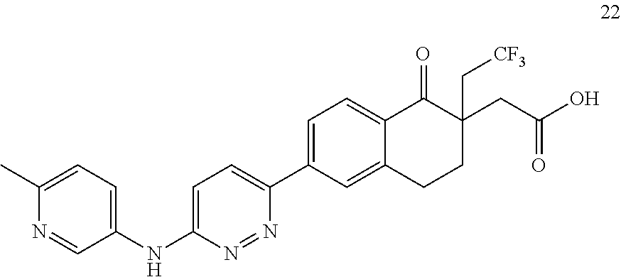 2-(6-(6-(6-methylpyridin-3-ylamino)pyridazin-3-yl)-1-oxo-2-(2,2,2-trifluoroethyl)-1,2,3,4-tetrahydronaphtha-len-2-yl)acetic acid (enantiomer-1) (22)