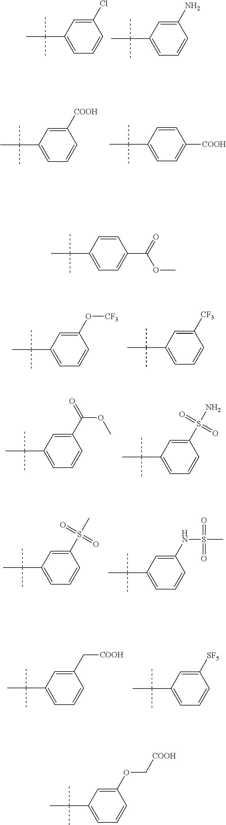 Moreover preferred substituents are F, Cl, Br, OH, SH, ═O, NH2, C1-4 alkyl (e.g. methyl, ethyl, t-butyl), NMe2, CONH2, CH2NMe2, NHSO2Me, C(CH3)2CN, COMe, OMe, SMe, COOMe, COOEt, CH2COOH, OCH2COOH, COOH, SOMe, SO2Me, cyclopropyl, SO2NH2, SO2NHMe, SO2CH2CH2OH, NHCH2CH2OH, CH2CH2OCH3, SF5, SO2NMe2, NO, NO2, OCF3, SO2CF3, CN or CF3.