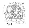 The coolant channel 8 is located near the discharge air passage 7 in order to cool it. The coolant channel 8 is separated from the channel area 7.3 by the second wall 21.