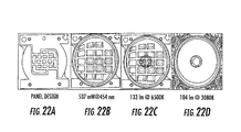 FIG. 22A is a photograph of a submount including electrically conductive pads for an array of serially connected LED die according to various embodiments described herein, and FIGS. 22B, 22C, and 22D are photographs of LED assemblies including the submount of FIG. 22A.