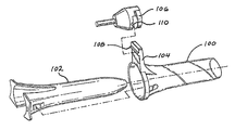 - the handle 104 has a ridge 108 that fits into a corresponding groove 110 on the clamp 106 , to prevent relative rotation between the two when engaged. Modifications to this design are described in Mangiardi.