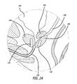 FIG. 23 is a limited view showing the protective delivery sheath being inserted up the urethral canal and sealants in place within the cavities where core tissue has been removed for ensuring hemostasis.
