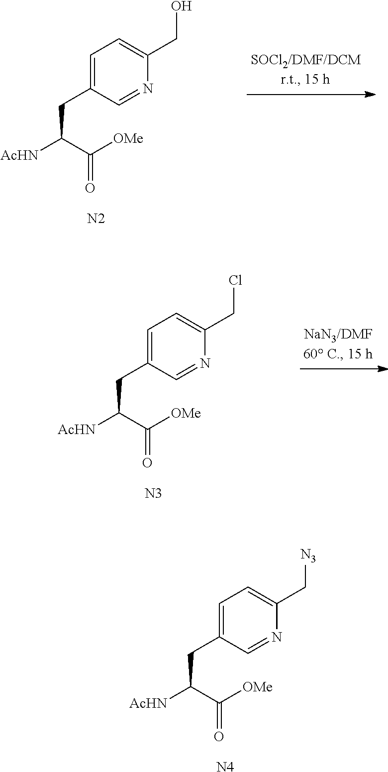 Preparation of 2-Amino-3-(5-azidomethyl-pyridin-2-yl)-propionic Acid (1)