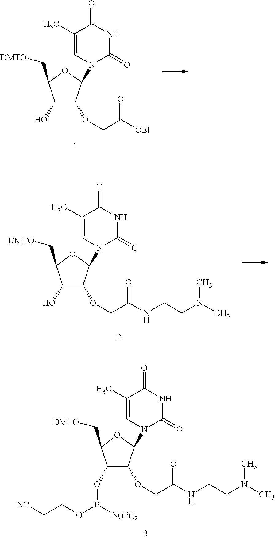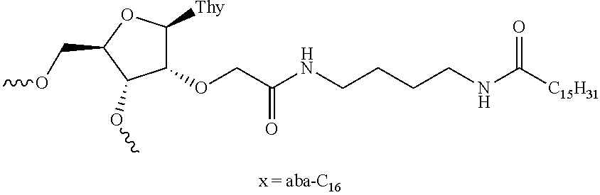 Subscripts in the Table above: d=DMAEAc; i=N-methoxyamino BNA; J=tcDNA; k=(R) 5′-methyl