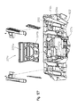 As shown best in FIGS. 103 and 104, enclosure 1876 includes lower bosses at 1876 m, having apertures 1876 n. As shown best in FIG. 104, enclosure 1876 further includes a top brim portion 1876 p having a latching aperture at 1876 q. An outer peripheral groove at 1876 r circumscribes a front opening 1876 s and receives seal 1882 therein.