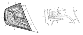 In this rear combination lamp 1 with the above-configuration, the turn indicator lamp 6 and the back-up lamp 7 can each employ a not-illustrated bulb as a light source, and can be disposed on upper and lower sides, respectively, and on an inner side (side closer to the center) of the vehicle body (on the right side of FIG. 2). The tail and stop lamp 5 can employ an LED 9 as a light source as illustrated in FIG. 3, and can be disposed on an outer side (side farther from the center) of the vehicle body to surround the turn indicator lamp 6 and the back-up lamp 7 from their outer sides.