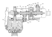 With reference to the construction of FIGS. 12-16, the housing 148 is journalled for rotation about the loader axis B by way of a bearing 165 disposed between the housing 148 and the shaft 144. This configuration may be applied to any construction in this disclosure. When the shaft 144 rotates, friction in the bearing 165 acts to couple the housing 148 for rotation in the direction of the shaft 144. Thus, the housing 148 is driven to rotate with the shaft 144. However, a stop 169 limits the range of motion of the housing 148 to a few degrees, e.g., about 5 to about 10 degrees, about 1 to about 30 degrees, about 1 to about 20 degrees, or about 1 to about 15 degrees, or about 1 to about 10 degrees, etc. When the stop 169 is reached, the shaft 144 rotates freely in the bearing 165 and the housing 148 remains against the stop 169. Projections 173 extending generally radially from the housing 148 and spaced apart by a radial gap 175 engage the stop 169 to inhibit rotating, or rocking, motion of the housing 148 in either direction, the stop 169 being disposed in the gap 175 radially between the projections 173. FIGS. 14-15 illustrate the housing 148 moving between a first position (FIG. 14) and a second position (FIG. 15) against the stop 169.