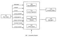 - the Dealworks system comprises a deal workspace 104 , a conflicts approval module 105 , an expense tracking pipeline 106 , and a deal closure module 107 .