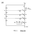 In the exemplary configuration depicted in FIG. 3, the position of the switch (315) is such that the common node of the switch (315) couples the gate of the transistor M3 to the output node of the impedance conversion unit (310), therefore presenting a voltage and an impedance at the output node of the impedance conversion unit (310), to the gate of the transistor M3. In an alternate position (not shown) of the switch (315), the common node of the switch (315) couples the gate of the transistor M3 to node VB3 of the resistive ladder network (R4, R3, R2, R1), therefore presenting a voltage and an impedance at node VB3 to the gate of the transistor M3.