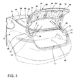 Referring to FIG. 3, the trunk lid 52, according to one embodiment, may include a front portion 56, a rear portion 58, and a downwardly extending portion 60. A pair of gas springs 46 is coupled to the front portion 56 and a stationary panel 32 of the vehicle 28 to movably and/or rotatably interconnect the trunk lid 52 to the body 30. The trunk lid 52 may be selectively retained in a closed position by a conventional latch 48 and striker 62. The latch 48 may be operably connected to a button by a mechanical cable, or the latch 48 may be powered to permit remote release.