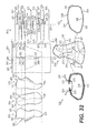 FIG. 23 is a schematic plan view of another embodiment of a knitted textile element including knitted components, pre-removal, in which features of a warp knit stitch and interlayer warp knit stitch line of the knitted textile element are shown in detail;