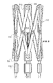 FIG. 20 is a fragmentary, perspective view of the stent deployment system of FIG. 18 with a diagrammatic illustration of paths of travel of strut crossing points as the stent is moved between its expanded and contracted states;