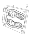 A first mold assembly 30 used to form a first preform of sole assembly 10 is illustrated in FIG. 4, and includes a first mold member 32 and a second mold member 34. First mold member 32 is connected to second mold member 34 by way of a hinge member 36. As illustrated here, first mold assembly 30 is used during the formation of a mating pair of first preforms for a pair of sole assemblies 10. However, for ease of explanation, the following description is directed to forming a single first preform for a single sole assembly 10. It is also to be appreciated that more than two sole assemblies could be simultaneously produced with first mold assembly 30 and the additional mold assembly elements and steps shown and described herein.