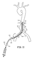 FIG. 11 is a front view of a coated balloon device positioned at an aortic aneurysm with a sheath covering the balloon.
