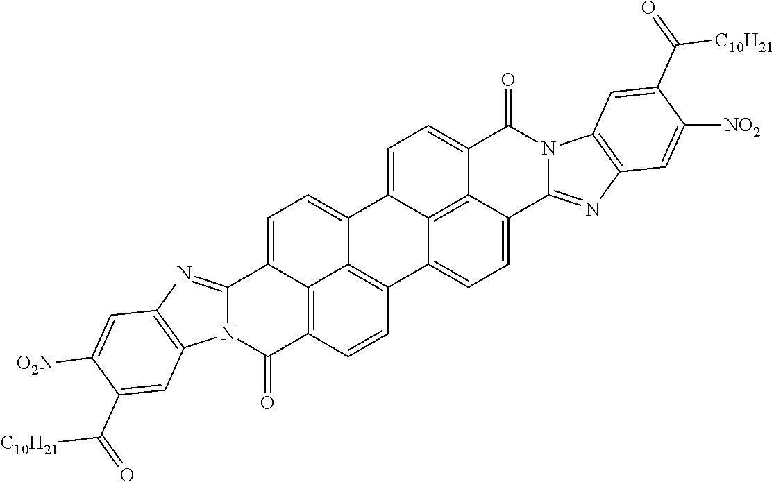 - JNBJWCXHJFEMGH-UHFFFAOYSA-N CCCCCCCCCCC(=O)C1=CC2=C(C=C1[N+](=O)[O-])N=C1/C3=C/C=C4/C5=CC=C6C(=O)N7C(=NC8=C7C=C(C(=O)CCCCCCCCCC)C([N+](=O)[O-])=C8)/C7=C/C=C(/C8=C4C3=C(/C=C\8)C(=O)N12)C5=C67 Chemical compound CCCCCCCCCCC(=O)C1=CC2=C(C=C1[N+](=O)[O-])N=C1/C3=C/C=C4/C5=CC=C6C(=O)N7C(=NC8=C7C=C(C(=O)CCCCCCCCCC)C([N+](=O)[O-])=C8)/C7=C/C=C(/C8=C4C3=C(/C=C\8)C(=O)N12)C5=C67 JNBJWCXHJFEMGH-UHFFFAOYSA-N 0.000 description 1