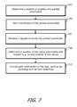 In any situation, when the device determines 704 that the automobile has stopped or is otherwise parked, the device obtains a snapshot of the determined location, or can otherwise utilize a location determination approach to determine the current location and/or coordinates, where the device marks the current coordinates, such as by storing the coordinates in a storage location that is associated with the vehicle position or other such information. Thereafter, the location information can be used to locate and/or provide directions to the user's automobile. For example, the computing device receives a request 706 from the user of the device to locate the user's car. Based at least in part upon determined location discussed herein, the computing device can determine 708 a relative location of the user's car with respect to a current location of the device. Although in many situations the analysis will be performed by the computing device, in other embodiments the position information might be obtained by a separate system or service that is operable to determine the relative location and/or directions, and provide that information to the computing device. If the computing device has access to map data for the current location, the computing device can determine and provide 710 (e.g., display) path information to the user, such as by providing turn-by-turn directions based on the current location.