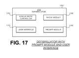 FIG. 17 is a block diagram of a defibrillator having a prompt module and a user interface.