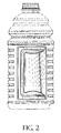 FIG. 2 is a side elevation view of the container of FIG. 1, the opposite side being a mirror image;