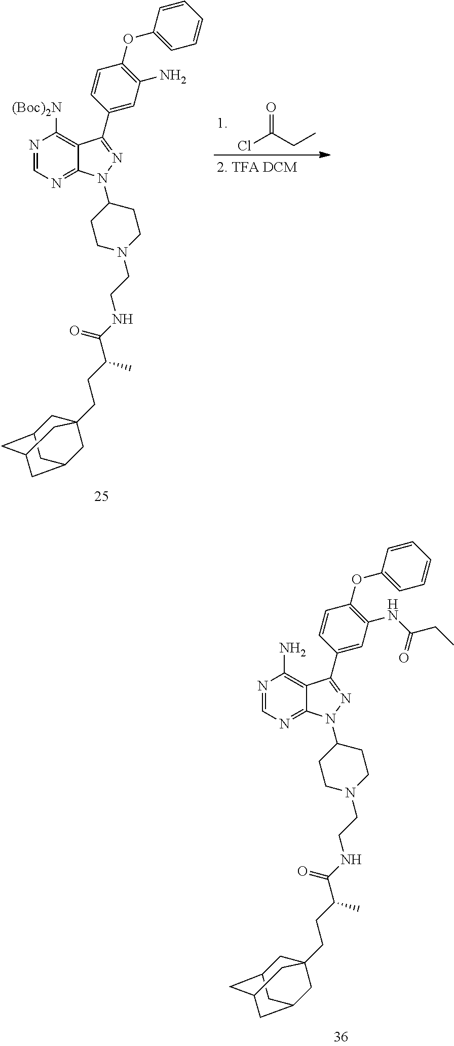 - XOPBBGWEGRWWOP-UHFFFAOYSA-N C=CC(=O)NC1=C(OC2=CC=CC=C2)C=CC(C2=NN(C3CCN(CCNC(=O)CC45CC6CC(CC(C6)C4)C5)CC3)C3=NC=NC(N)=C23)=C1 Chemical compound C=CC(=O)NC1=C(OC2=CC=CC=C2)C=CC(C2=NN(C3CCN(CCNC(=O)CC45CC6CC(CC(C6)C4)C5)CC3)C3=NC=NC(N)=C23)=C1 XOPBBGWEGRWWOP-UHFFFAOYSA-N 0.000 description 1