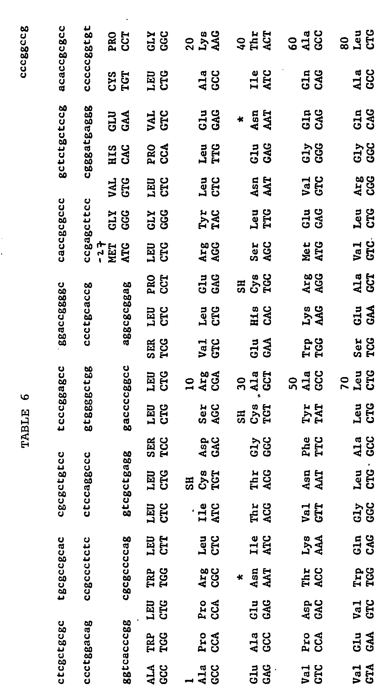 - Table 5 illustrates the nucleotide and amino acid sequence of the EPO clone, lambda-HEPOFL6 ;