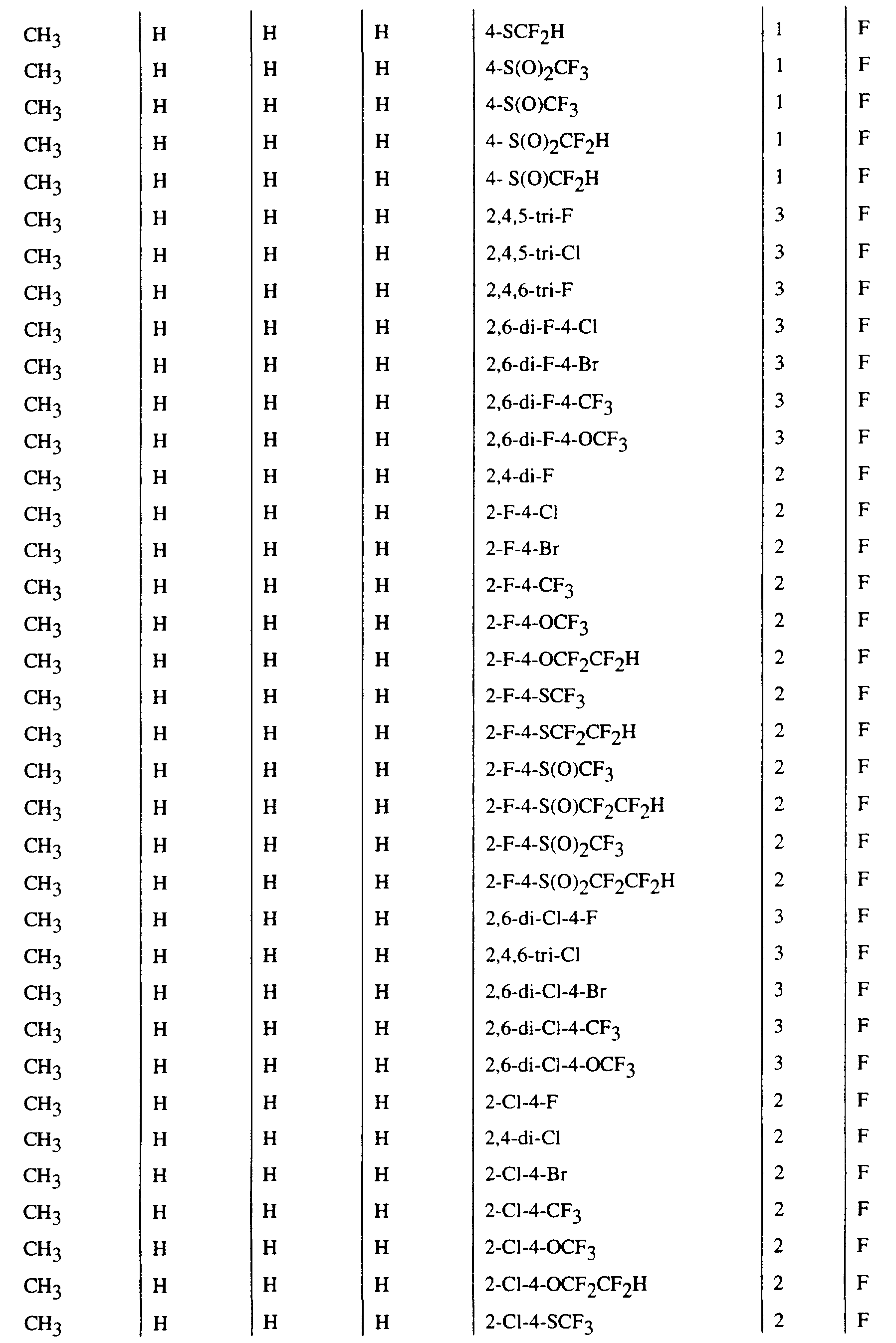 - each R 5 is independently selected from the group C 1 -C 10 alkyl, C 1 -C 10 haloalkyl, C 2 -C 10 alkenyl, C 2 -C 10 haloalkenyl, halogen, CN, SCN, NO 2 , OR 6 , SR 6 , S(O)R 6 , S(O) 2 R 6 , OS(O) 2 R 6 , CO 2 R 6 , C(O)R 6 , C(O)N(R 7 ) 2 , SO 2 N(R 7 ) 2 and N(R 7 )SO 2 R 6 ; or when m is 2 or 3, then two adjacent R 5 can be taken together as -OCH 2 O-, -OCH 2 CH 2 O-, -OCH 2 C(CH 3 ) 2 O-, -OCF 2 O-, or -OCF 2 CF 2 O- to form a cyclic bridge between adjacent atoms on the same aromatic ring;