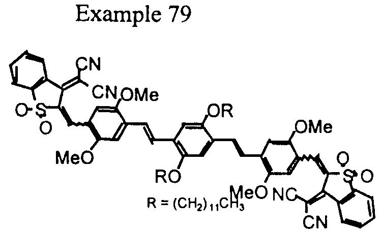- Figure 11 illustrates the condensation of 1 ,4-dibromo-2,5- bis[methylene(triphenylphosphonium)]benzene dibromide, 1 ,4-dicyano-2,5- bis[methylene(triphenylphosphonium)]benzene dibromide and 4-diphenyl- aminobenzaldehyde to yield 1,4-dibromo- and l,4-dicyano-2,5-bis(4'- diphenylaminostyryl)benzenes;