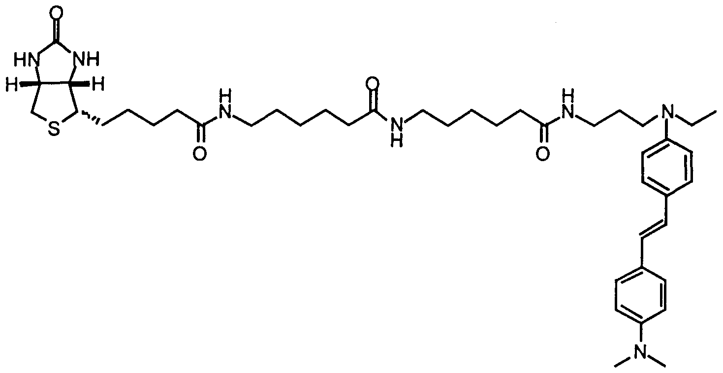 - Figure 9 illustrates a reaction scheme for the synthesis of an amine biotin substituted two-photon absorbing stilbene
