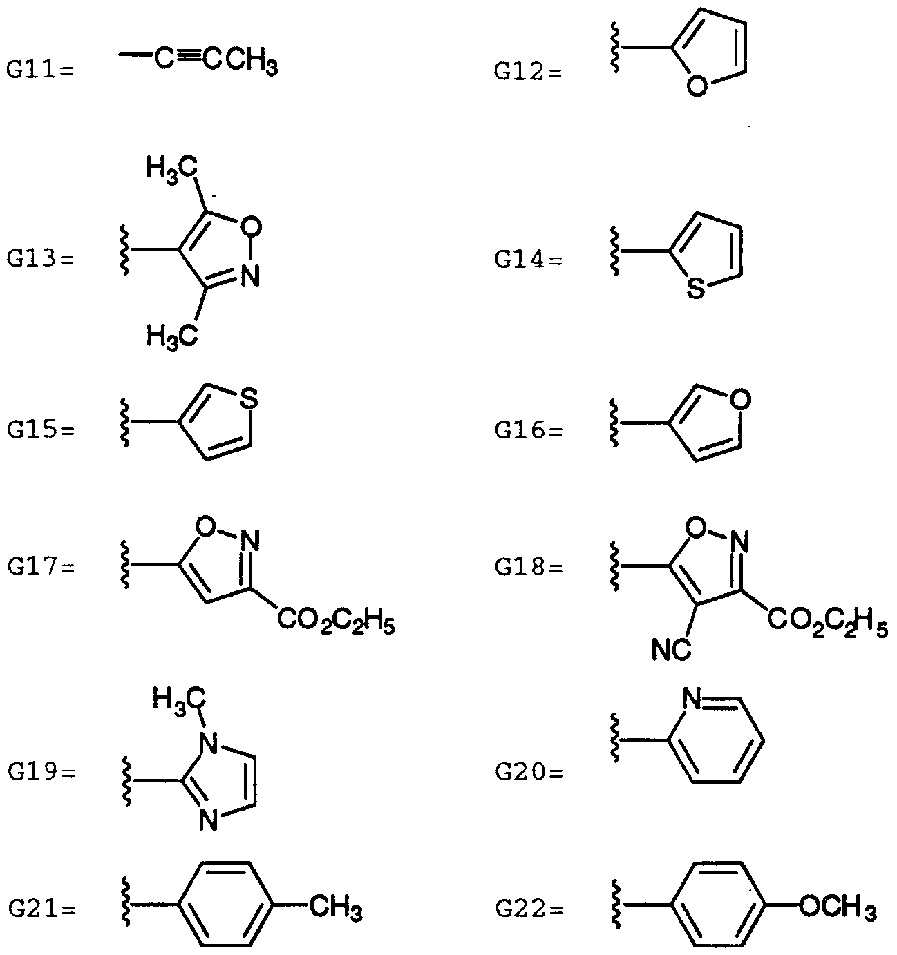 7391 CH2 Cl CF3 H H C-C3H5 bond G15 oi l 7392 CH2 Cl Cl H H c-C3H5 bond G15 - 7393 CH2 Cl CF3 H H c-C3H5 bond G16 139 - 140 7394 CH2 Cl Cl H H C-C3H5 bond G16 - 7395 CH2 Cl CF3 H H c-C3H5 bond G17 - 7396 CH2 Cl Cl H H c-C3H5 bond G17 oil 7397 CH2 Cl CF3 H H c-C3H5 bond G18 - 7398 CHj Cl Cl H H c-C3H5 bond G18 oi l 7399 CHj Cl ci H CH3 CH3 bboonndd G8 oi l 7400 CH2 Cl CF3 H H c-C3H5 bond G19 7401 CH2 Cl Cl H H c-C3H5 bond G19 oil 7402 CH2 Cl Cl H H c-C3H5 bond G20 oi l 7403 CH2 Cl CF3 H H c-CjHj bond G20 7404 CH2 Cl Cl H H C4H9 bond Gl oil 7405 CH2 Cl Cl H H C6H5 C=0 C6H oil