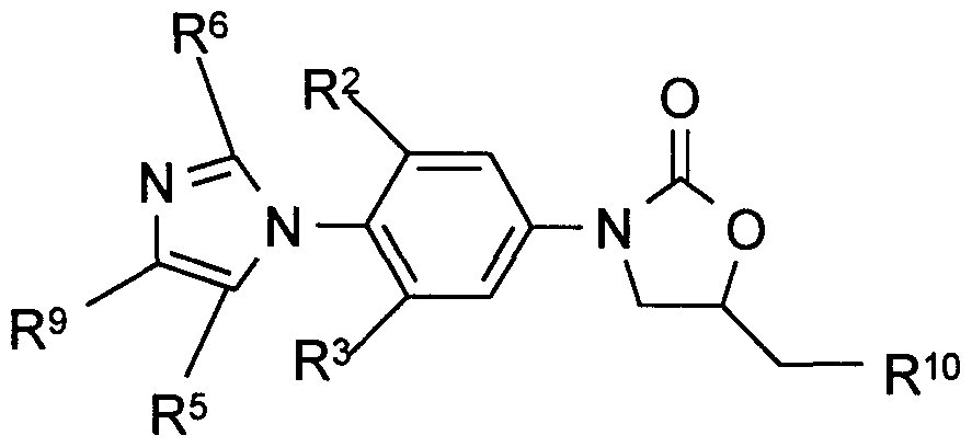 Of the above, N-[(5S)-3-(3-Fluoro-4-(4-(thiazol-2-ylaminocarbonyl)imidazol-l- yl)phenyl)-2-oxooxazolidin-5-ylmethyl]acetamide is especially preferred. A further especially preferred compound of the invention is N-[(5S)-3-(3-Fluoro-4-(thiazol-2-ylimidazol-l-yl)phenyl)-2-oxooxazolidin-5-yl- methyl]acetamide; and pharmaceutically-acceptable salts thereof.