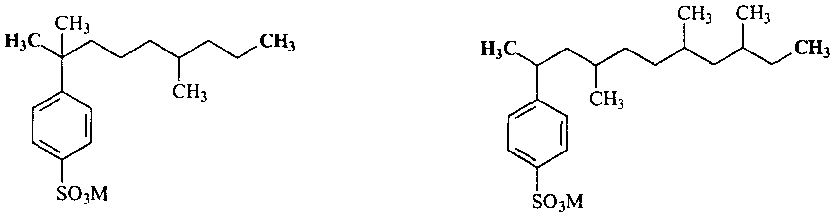 - a and b are integers selected such that said branched alkylbenzene sulfonates are electroneutral (a is typically from 1 to 2, preferably 1, b is 1);