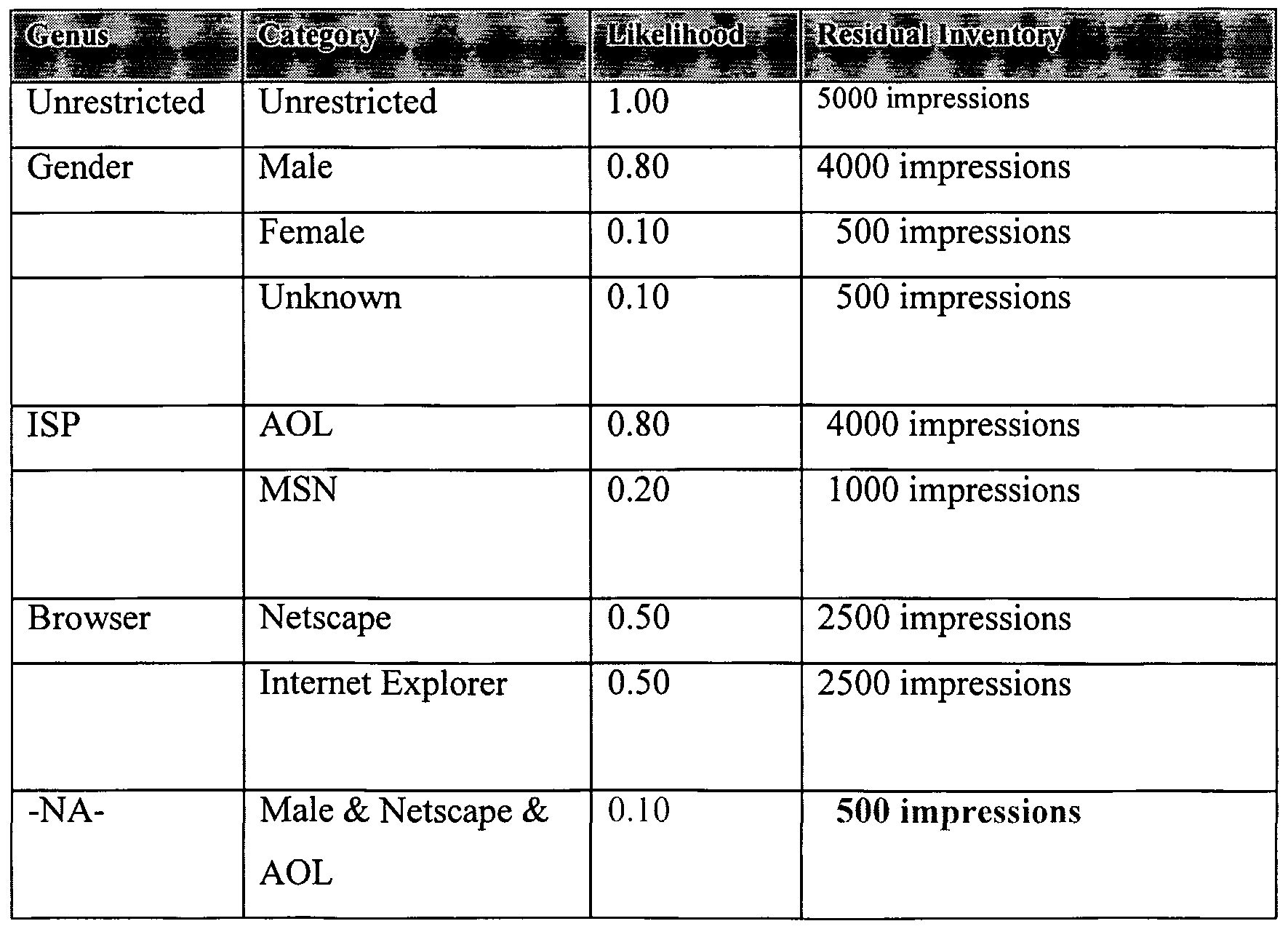 - the sample database is used to approximate a portion of the total inventory available for an advertisement campaign directed to the at least one of the genus or the category of the genus.