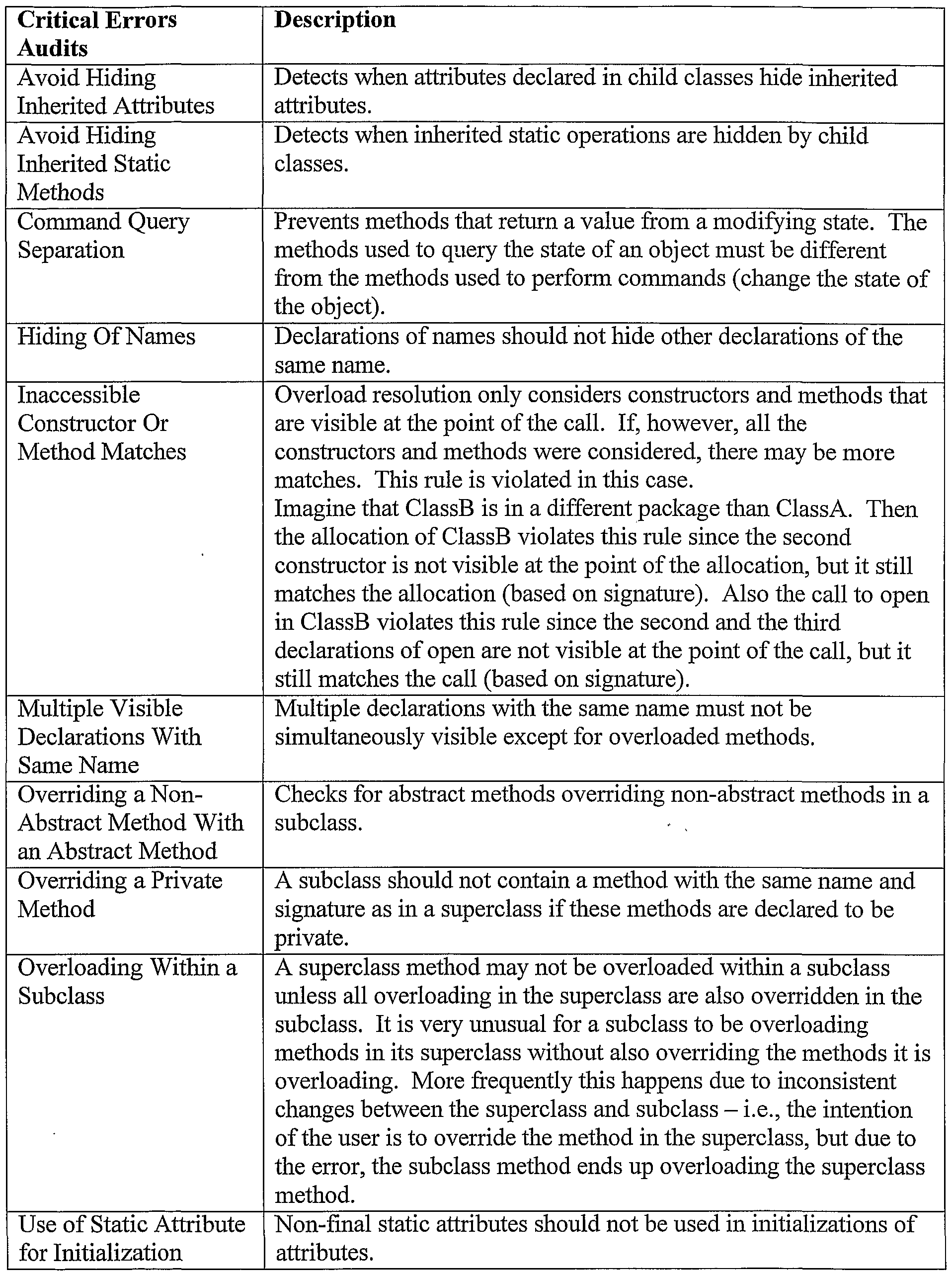 and superfluous content. Examples of these audits with their respective definitions are identified in Tables 10-17 below.