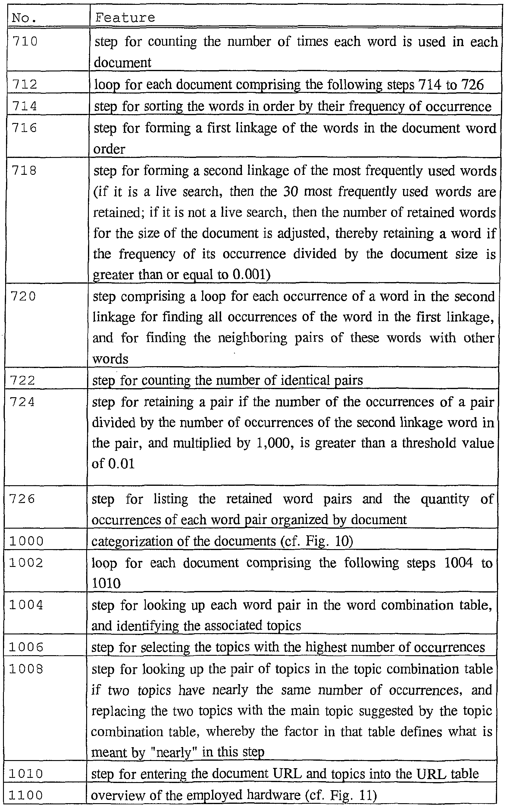- (1 ⁇ i ⁇ n) of said feature vector represent the words of said document, as typically done in the popular vector representation for information retrieval (Salton & McGill,