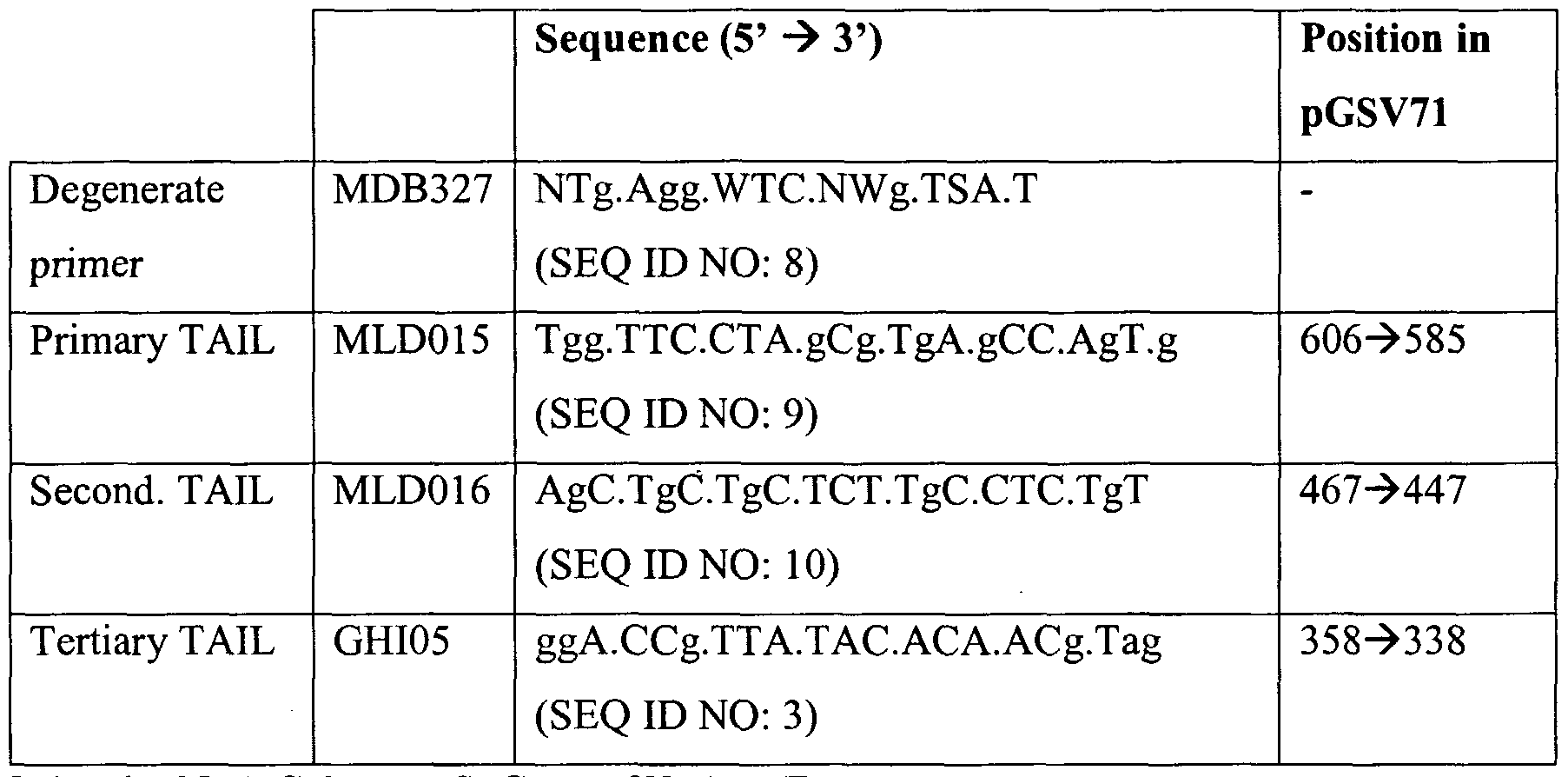 - the primers are directed against the 5' flanking region within SEQ ID NO: 1 and the foreign DNA respectively; most preferably, the primers comprise the nucleotide sequence of SEQ ID NO: 2 and SEQ ID NO: 3 respectively, and yield a DNA fragment of between 250 and 290 bp, preferably of about 269 bp.