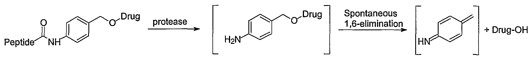 Amine-containing drugs are attached through carbamate functionalities to the benzylic hydroxyl group of the -amionobenzyl alcohol-based spacer. The resulting prodrugs are activated upon protease-mediated cleavage, leading to a 1,6-elimination reaction (Wakselman, M. 1,4- and 1,6-Eliminations from Hydroxy- and Amino-Substituted Benzyl Systems: Chemical and Biochemical Applications. Nouveau J. Chim. 1983, 7, 439-447) that splits off unmodified drug and carbon dioxide.