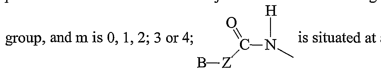 para- position with respect to the -CH - group; Z is an amino acid or a peptide; p is 1 or 2; and B is hydrogen or a blocking group selected from a D-amino acid and an N- terminus protecting group.