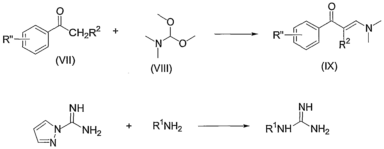 Specifically, a 5,6-disubstituted uracil (II) may be converted to a 2,4- dichloro-5,6-disubstituted pyrimidine intermediate of formula (III). This key intermediate is allowed to react with heating up to 120°C, as shown in Reaction