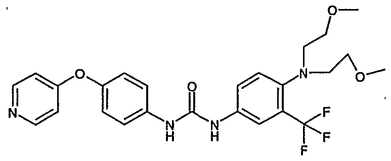 - IHDYJLLOVGEHGM-UHFFFAOYSA-N Cc(c(C(F)(F)F)c1)ccc1NC(Nc(cc1)ccc1Oc1ccncc1)=O Chemical compound Cc(c(C(F)(F)F)c1)ccc1NC(Nc(cc1)ccc1Oc1ccncc1)=O IHDYJLLOVGEHGM-UHFFFAOYSA-N 0.000 description 1