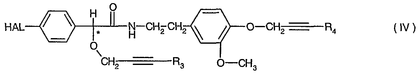 - R. is hydrogen, C ⁇ .C alkyl, C 3 .C 6 cycloaIkyl or halophenyl, and R 2 is C ⁇ -C 4 alkyl; or with an alpha-alkynyloxyphenylacetic acid amide derivative of formula IV